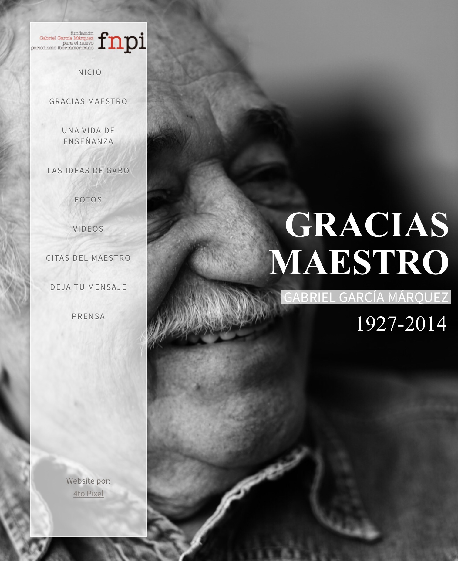 Así despide Jaime Abello Banfi, director de la Fundación Nuevo Periodismo Iberoamericano, a su impulsor, Gabriel García Márquez (Imagen de la homepage).